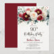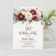 Invite your friends and loved ones to your 90th birthday with this burgundy and white floral invitation. The customisable text area in this invitation template allows you to effortlessly include all the necessary details for your special birthday celebration, including the date, time, venue, and RSVP information. A variety of paper types and corner styles are available for your unique invitations, along with the option to download if you prefer a digital format.