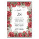 Red burgundy and white wedding seating order cards with accents of forest green. Featured are dahlia, chrysanthemum and roses.