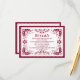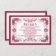 This enclosure card with deyails for the Quinceañera celebration features a stunning Mexican folk art design, incorporating a rich colour palette of burgundy and white. The intricate papel picado pattern adorning the card showcases exquisite burgundy flowers and leaves set against a pristine white backdrop, complete with delicate scalloped edges.