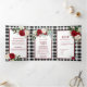 Burgundy and White Roses, Buffalo Plaid Wedding Tri-Fold Invitation