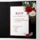 Burgundy and White Roses, on Black Background Tri-Fold Invitation