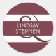 Burgundy and White Stripes Modern Wedding Classic Round Sticker