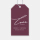 Burgundy and White Wedding Favour Gift Tag with Elegant Calligraphy.