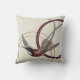 Stylish throw pillow features an artistic design in an ecru cream colour palette with burgundy and light grey and taupe accents. An artistic design with a hummingbird in flight as the focal point with muted burgundy and earthy green accents on a neutral abstract background with geometric circle composition. This elegant design is built on combinations of repeated circles and brushstrokes on a textured print background, all interwoven to form a stylish elegant artistic design. The stunning hummingbird in elegant modern colours compliments the lighter background.