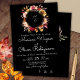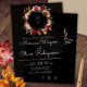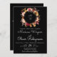 Burgundy beige floral on black wreath wedding invitation for a romantic wedding invitation.