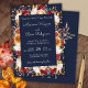 Burgundy floral on beige on navy blue fall colours foliage wedding invitation for a romantic wedding invitation.