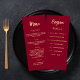 Program and menu card. Personalise and add your name, date and the menu. Burgundy coloured background, golden text.