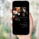 A black background decorated with dark burgundy, beige dusty orange coloured florals. Personalise and add your names and details.