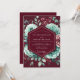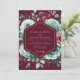 A rich burgundy backdrop showcases large, ruffled blossoms in muted teal and soft pink hues. Delicate foliage intertwines with the blooms, creating a romantic and slightly moody atmosphere. This design evokes an enchanting and sophisticated feel, perfect for a special occasion.