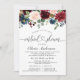Burgundy Blue Blush Flowers Virtual Bridal Shower Invitation.