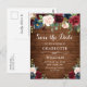 Burgundy Navy Blue Blush Wedding Save the Date Postcard.