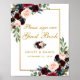 Elegant Watercolor Burgundy Marsala and Blue Floral Gold Guest Book Poster