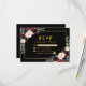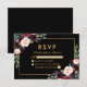 Burgundy Blue Floral Wedding RSVP Black Gold Card