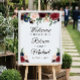Burgundy Blush Blue Floral Wedding Welcome Sign