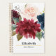 This design features an elegant, stunning, and a vibrant luscious watercolor navy blue burgundy merlot floral blooms arrangement and can be personalised with your name and year of your planner.