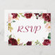 Burgundy Blush Chic Floral Wedding RSVP Response Postcard.