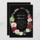 black and burgundy wedding theme design with blush and white painted flowers. A perfect design for your summer, spring and winter wedding. You can personalise the text and colour detail on this wedding invite template.