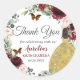 Burgundy Blush Floral Butterflies Princess Gold Classic Round Sticker