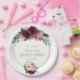 Burgundy Blush Floral Gold Mis Quince Quinceañera Paper Plate