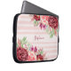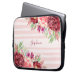 Burgundy Blush Floral Pink Stripes Monogram Laptop Sleeve