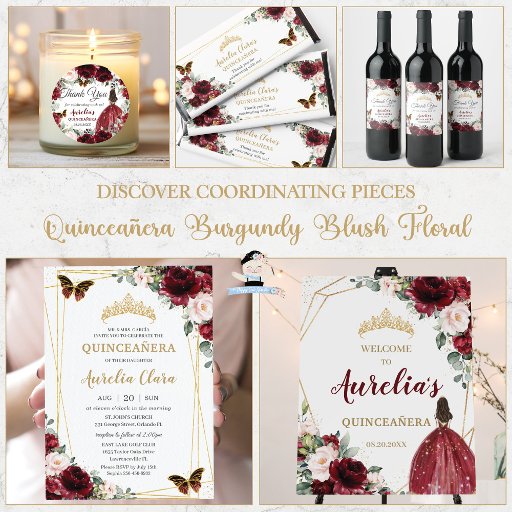 Quinceañera Burgundy Blush FloralDesigned by The Happy Cat Studio