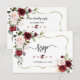 Elegant card design featuring watercolour burgundy blush flowers and green leaves, a faux gold frame, floral divider, on a white background. On the back the same flowers bouquets. Use Personalise tool to add your info, change fonts, font's colours. For matching items, please, visit my Burgundy Blush Flowers Collection.