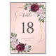 Burgundy Blush Gold Floral Wedding Table Number