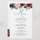 Burgundy Blush Navy Blue Roses Wedding Dinner Menu