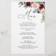 Burgundy Blush Navy Blue Roses Wedding Dinner Menu