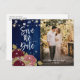 Burgundy Blush Navy Blue Save The Date Photo Announcement Postcard