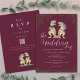 Burgundy & Blush Pink Dinosaur Wedding QR Code Invitation