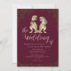 Make your wedding unforgettable with this unique roach romantic burgundy and blush pink stylish modern dinosaur wedding invitation featuring a charming T-Rex bride and groom illustration. Perfect for couples who share a love of dinosaurs, this fun yet elegant wedding invite blends playful Jurassic personality with modern botanical style.