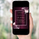A deep burgundy background decorated with burgundy and pink florals, flowers with silver foliage. Personalise and add your name and party details. Rose gold coloured text.