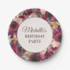 Burgundy Blush Pink Floral Birthday Party Paper Plate