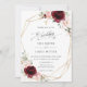This chic church wedding invitation features a gold glitter geometric frame adorned by beautiful watercolor burgundy, blush pink floral and green foliage arrangements, as well as "the wedding of" heading in a pretty hand calligraphy style. Personalize it with your details easily and quickly, simply press the customise it button to further re-arrange and format the style and placement of the text. (c) The Happy Cat Studio