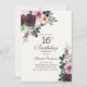 Burgundy Blush Pink Floral Leaves 16th Birthday Invitation