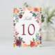 Burgundy Blush Pink Flower Wedding Table Number Card.