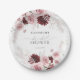 Burgundy Blush Pink Roses Floral Bridal Shower Paper Plate