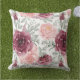 Burgundy blush watercolor floral throw pillow