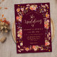This boho wildflower burgundy fall wedding invitation beautifully blends rustic autumn charm with refined sophistication. Featuring hand-painted watercolor wildflowers arranged around a graceful arch, the design showcases warm, earthy tones burnt orange, terracotta, peach, coral, soft pink, purple, yellow, and burnt umber that capture the essence of a cosy fall celebration.