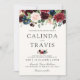 A unique burgundy floral themed set of invitations tailored specifically to your future wedding. They feature a unique floral theme with the large names of the bride and groom.