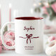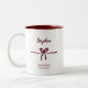 Burgundy Bow Bridesmaid Script Modern Name Date Two-Tone Coffee Mug