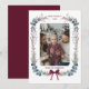 Burgundy Bow Watercolor Botanical Christmas Photo Holiday Card