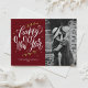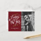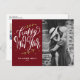 Burgundy Calligraphy and Wreath New Year Photo Holiday Postcard
