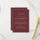 Infuse your wedding stationery with a touch of romantic sophistication using our burgundy details card. The graceful calligraphy script adds a timeless elegance, while the deep burgundy colour evokes a sense of passion and warmth. Share additional wedding details, such as gift registry information, hotel accommodations, and local recommendations. Ideal for winter weddings, romantic themes, and couples seeking a rich, elegant design. Customise with your specific details for a cohesive look.