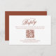 Make your wedding invitations unforgettable with this elegant wedding RSVP card in a minimalist burgundy design. Featuring classic calligraphy script and traditional typography, it captures traditional elegance and sophistication. The QR code template offers a convenient way for guests to RSVP, while the kindly reply wording adds a thoughtful touch. This stylish guest response card complements a classy formal design and pairs seamlessly with your matching stationery suite for a cohesive and polished look.