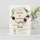 Burgundy champagne flowers botanical wedding invitation