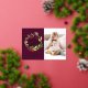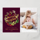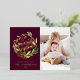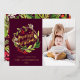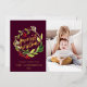 Merriest christmas watercolor floral photo Burgundy, red and green botanical elegant modern minimal typography Holiday foil card. Part of a collection.