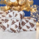 The festive art for this wrapping paper roll was created with hand brushed line art Christmas trees in a deep burgundy-red shade adorned with simulated gold glitter accents and dots, creating a fun and modern Christmas aesthetic. The glitter on this classic holiday tree-themed gift wrapping paper is part of the printed design, so the paper will retain the integrity of the glitter-look through handling/wrapping, and will not leave a mess of glitter behind everywhere. This elegant Christmas tree pattern is available in burgundy, green, light brown, and pink.