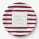 Burgundy Classic Stripe Faux Gold Foil Wedding Paper Plate